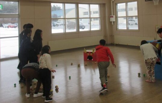 話を聞き終わったら豆まきスタートです!