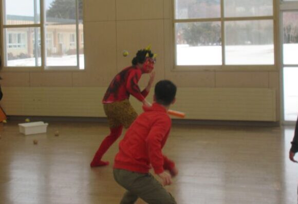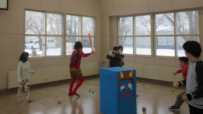 段ボールの鬼に向かってボールを投げていたら…