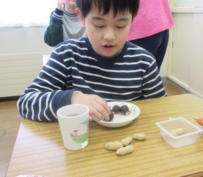 鬼退治をした後にみんなでおやつを食べました🥜🍩